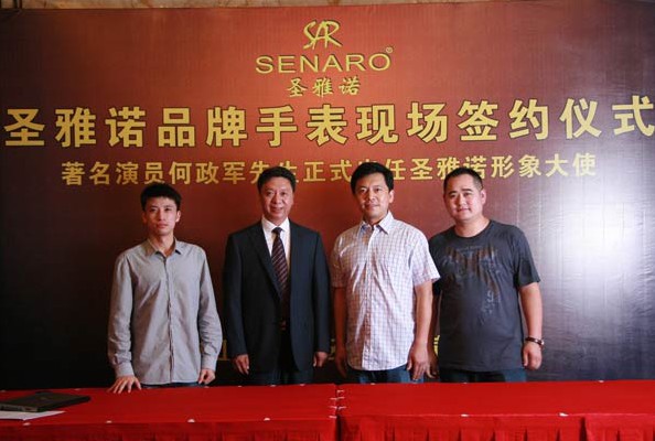 2013年6月15日,佛山南海霖梵鐘表企業刑總及我司經紀人一行飛抵上海,參加在上海松江逸東華酒店的簽約儀式,圣雅諾品牌手表正式聘請何政軍出任代形象大使。何政軍的影視劇代表作有:《國歌》、《十六歲的花季》、《紫荊勛章》、《大雪無痕》、《亮劍》等。針對圣雅諾品牌市場定位,嘉華明星演出團隊特推薦何政軍老師,因其沉穩、親切、正派及好男人形象深受觀眾喜愛,得到圣雅諾公司及代理商一致認可。相信通過此次合作,圣雅諾品牌必定在銷售及品牌內涵上達到全新高度!