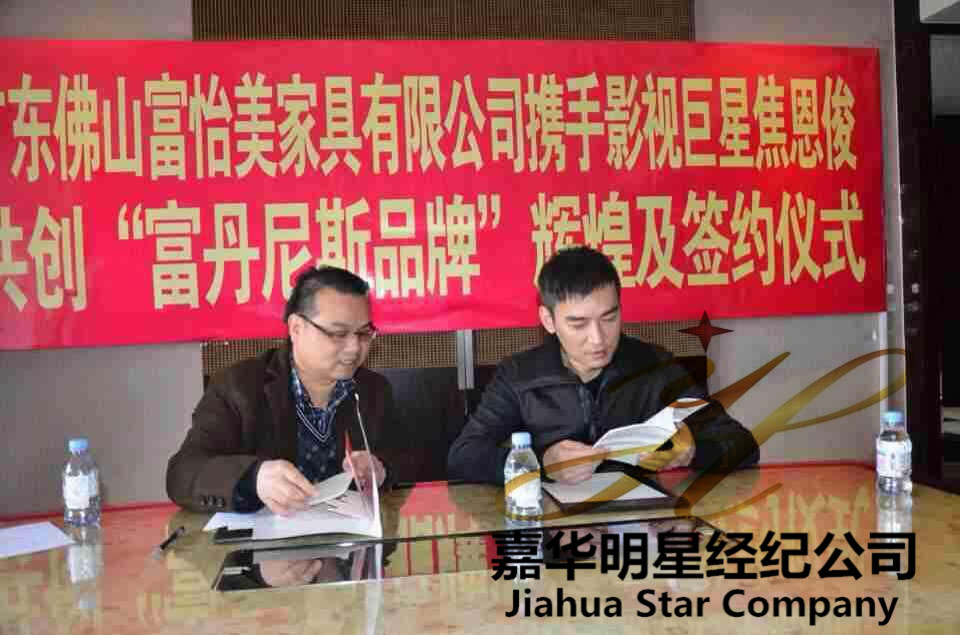 2014年3月1日,嘉華明星經紀公司經紀人、佛山富怡美家具有限公司導班子一行抵達徐州開元名都大酒店,簽約影視巨星焦恩俊擔任其旗下品牌富丹尼沙發形象大使。