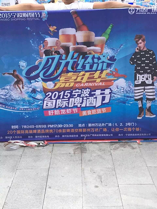 嘉華娛樂訊:7月24日晚,嘉華明星經紀公司經紀人攜中國好聲音歌浴森出席寧波購物節暨啤酒節開幕式活動。
