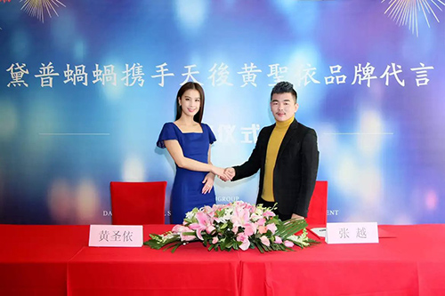 2016年1月15日黛普蝸蝸聘請黃圣依擔任其品牌代言人。除了演戲以外,而黃圣依歌唱方面也是值得贊賞,從首支單曲《不許惹我生氣》到《選美09春晚“森林舞會”現(xiàn)場真唱everyday》,黃圣依的每張專輯都交出了一份滿意的答卷。作為一個多棲發(fā)展的女明星,黃圣依做得很成功,與此同時她在商業(yè)上也做到了和在演藝事業(yè)上一樣的卓越成績。
