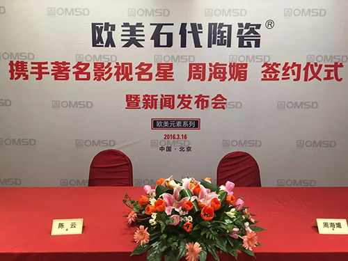 2016年3月16日,周海媚擔任歐美石代陶瓷品牌代言人簽約儀式。20世紀80、90年代,海媚的名字幾乎與港劇的全盛時期緊密聯系在一起的,《流氓大亨》、《義不容情》、《大鬧廣昌隆》、《今生無悔》幾乎每部都是當年的收視冠軍劇,海媚更連續三年被評為“香港地區最受歡迎的女演員”;現在的周海媚,蕙質蘭心,由內而外散發出來的魅力。