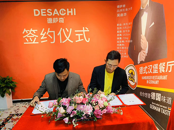 10月18日,德薩奇攜手吳啟華強勢推出正宗德國口味漢堡!與人氣大咖吳啟華于南京南站南廣場舉行品牌形象大使簽約儀式,眾多媒體、嘉賓共同見證了這一重要時刻!簽約儀式上,雙方都表達出對未來合作之路的期盼。