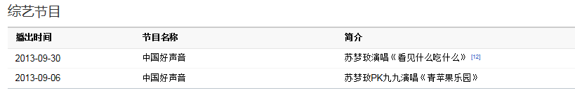 蘇夢玫 ,女,歌手,音樂人,攝影師。出生于1993年8月,在美國留學(xué)攻讀電影制作專業(yè)。2013年第二季中國好聲音年度8強(qiáng)、哈林組亞軍。有“布魯斯小公主”的美譽(yù)。2012年在豆瓣網(wǎng)站上創(chuàng)辦了屬于自己的音樂小站,上傳了翻唱布魯斯歌曲,受到網(wǎng)友好評,因此被好聲音劇組發(fā)現(xiàn),2013年7月參加《中國好聲音第二季》,演唱歌曲《老實(shí)情歌》,最終加入導(dǎo)師哈林戰(zhàn)隊(duì) 。9月30日,《中國好聲音第二季》哈林組的冠軍爭霸賽中,演唱歌曲《it’s a man’s world》 ,最終未能晉級四強(qiáng) 。