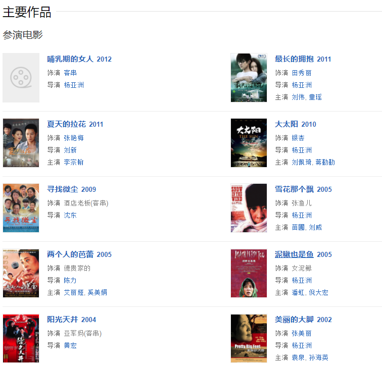? 2003-05    第10屆北京大學生電影節最佳女演員獎    美麗的大腳    (獲獎)