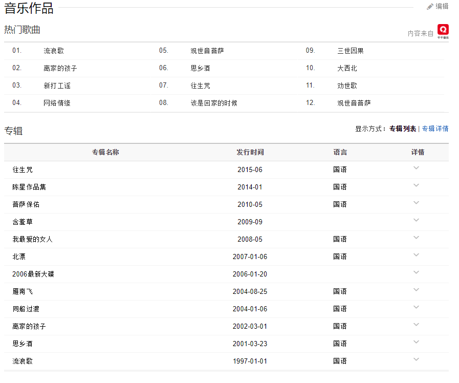 1997年,陳星推出單曲《流浪歌》、《傷心淚》。